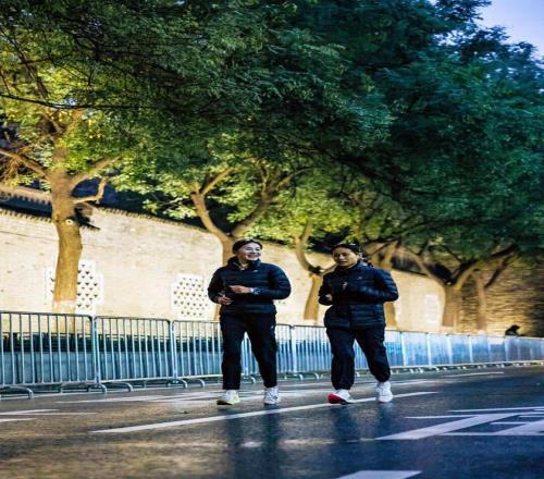 周六清晨的陕西省体育场,聚集着许多跑者熟悉的身影,朱卿和黄菲也在其列。在赛前最后一场的训练课里,朱卿和深圳的朋友一起放松慢跑完后又加了几组200米加速跑作为适应性训练,目的是想看看身体有没有哪里不舒服;黄菲和丁璐完成了10公里的慢跑,外加几组300米的冲刺。