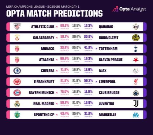相较于皇马的获胜概率,英超卫冕冠军利物浦得到的推算结果则为56.3%,要稍低一些,但考虑到红军是客场作战,这其实已经说明超算非常看好斯洛特的球队能够击败法兰克福。在此之前,利物浦已经连续输给水晶宫、加拉塔萨雷、切尔西和曼联,遭遇自2014年11月以来的最长连败,若是再败,那就将是该队自1953年以来的最差表现。