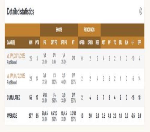 大家知道陈盈骏在此前的男篮世预赛是什么数据吗?场均27.7分钟,拿8.5分3.5助攻3篮板1抢断,命中率30.8%,三分命中率33.3%。