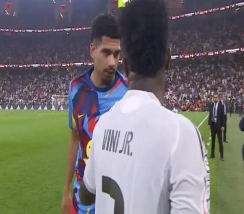 北京时间1月12日,西班牙超级杯决赛,巴塞罗那3-2皇家马德里,夺得冠军。在中场休息时,皇家马德里球星维尼修斯与此前深陷心理问题的巴萨球员阿劳霍进行了友好交谈。
