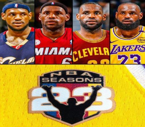 1月12日,根据ESPN消息,为了纪念詹姆斯的第23个赛季,詹姆斯将会在球衣贴上纪念臂章,臂章内容是他挥洒镁粉的动作,这也是詹姆斯的标志性动作之一,同时还有代表他为骑士,热火和湖人三支球队效力过的三条彩色条纹!